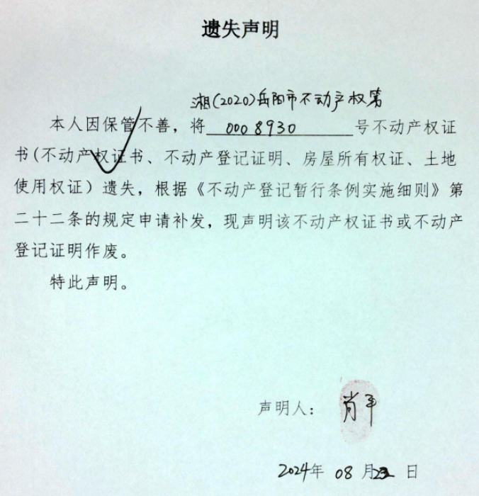 遗失声明(肖平)