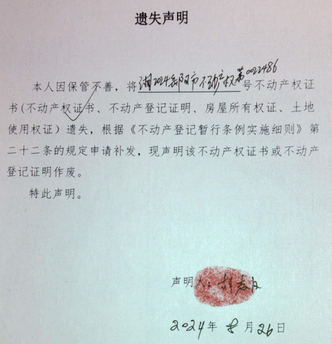 遗失声明( 胡志汉)