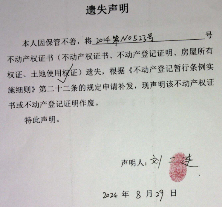 遗失声明(刘二连)