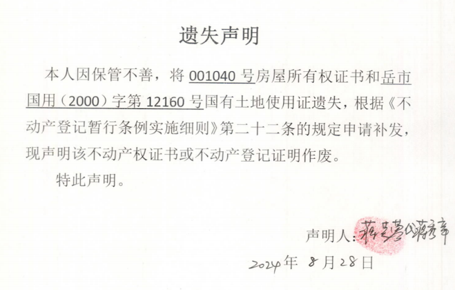 遗失声明(蒋秀章)