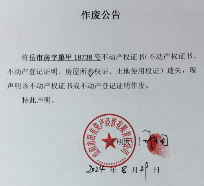 作废公告 (岳阳市国有资产经营有限责任公司)
