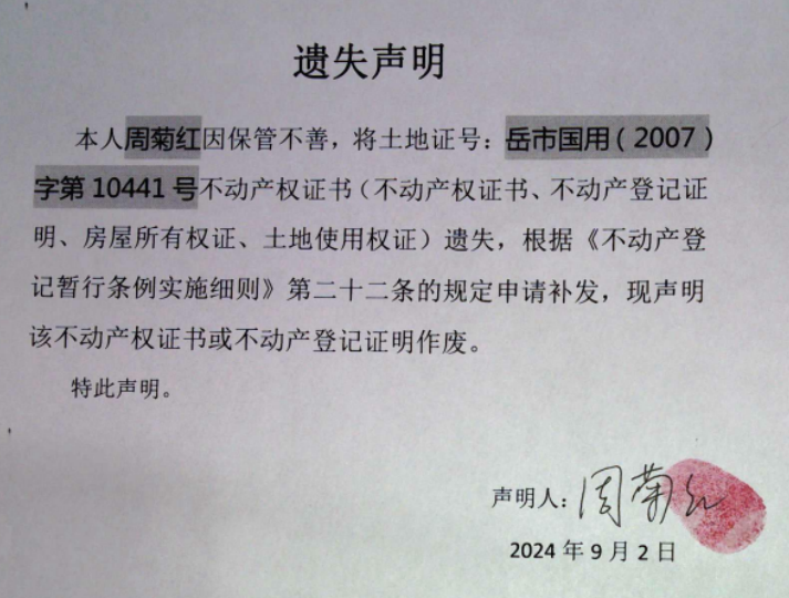 遗失声明(周菊红)