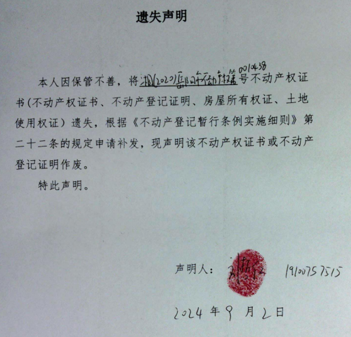遗失声明(刘哲仁 )