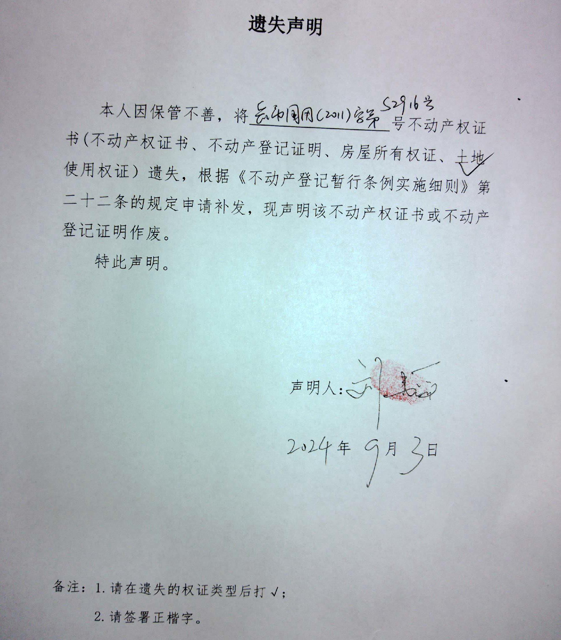 遗失声明(刘韬)
