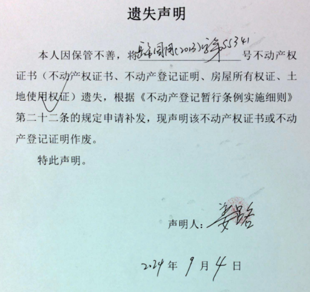 遗失声明(姜路)