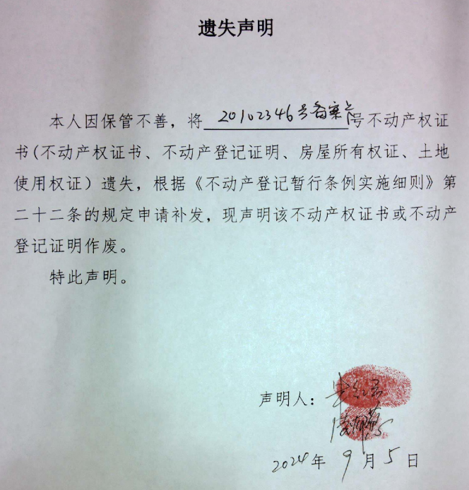 遗失声明(凌郁葱、朱红云)