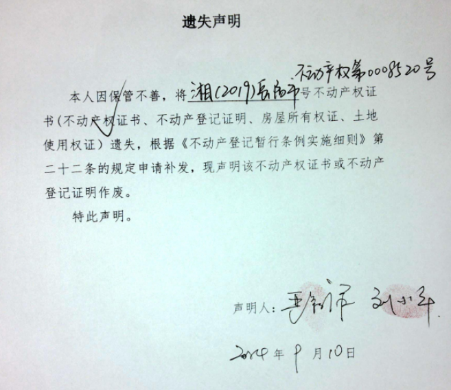 遗失声明( 刘小平、严新泽 )