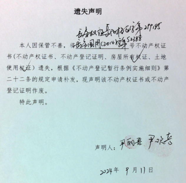 遗失声明(尹丽君、尹欢喜)