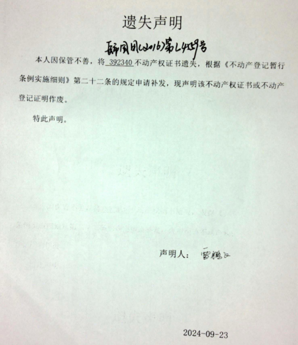 遗失声明(雷鹏飞)