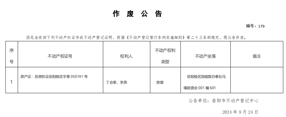 作废公告 编号:丁会章、李燕(179)