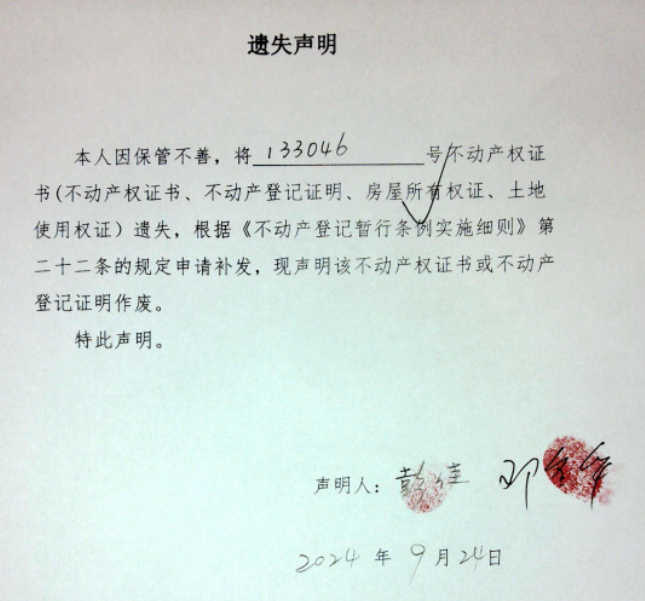 遗失声明(彭佳、邓冬华)