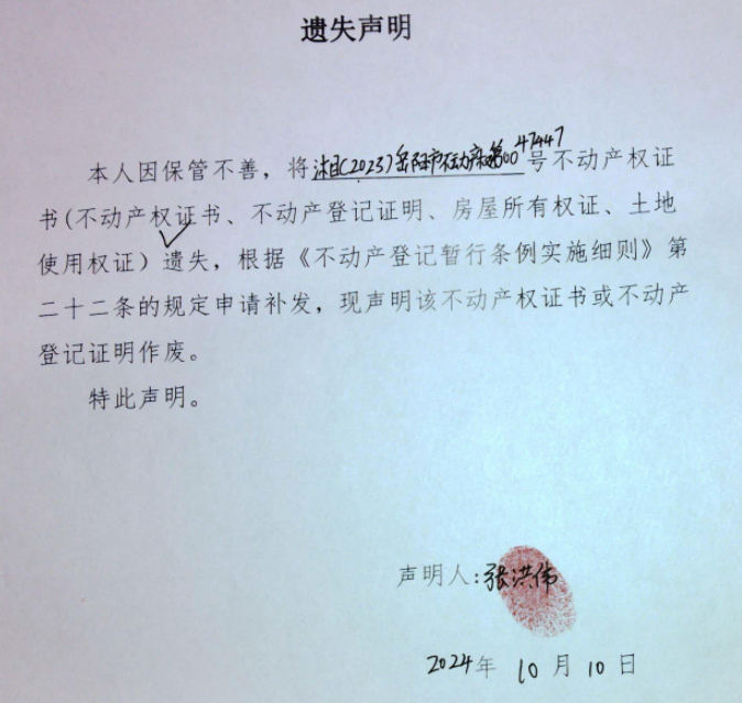 遗失声明(张洪伟)