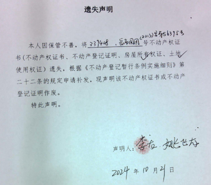遗失声明( 李龙、姚飞龙 )