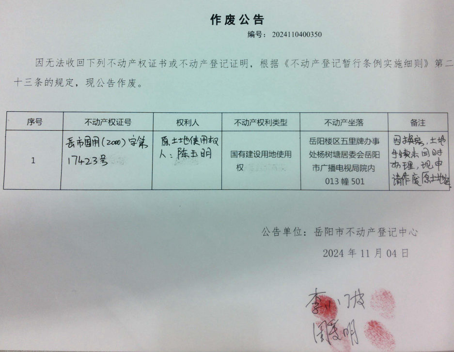 作废公告(陈玉明)