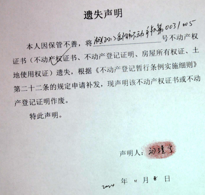 遗失声明(刘瑾宁)