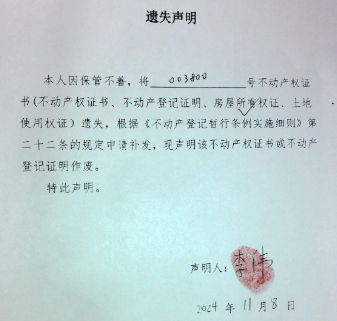 遗失声明(李伟 )