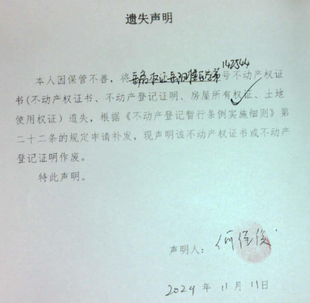 遗失声明(何佳俊)