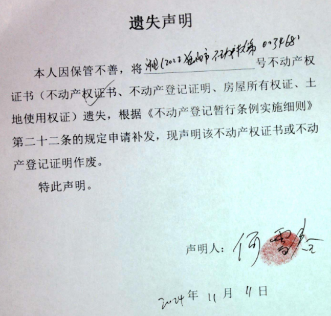 遗失声明(何雪春)