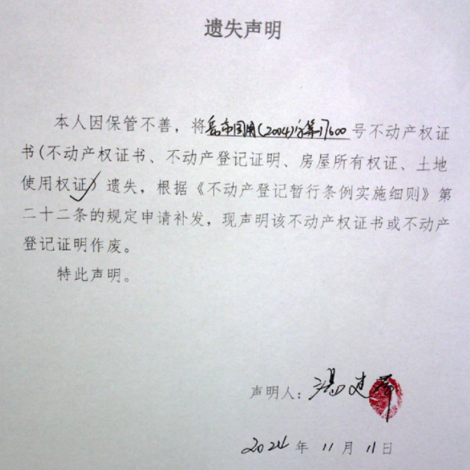 遗失声明(汤建萍 )2