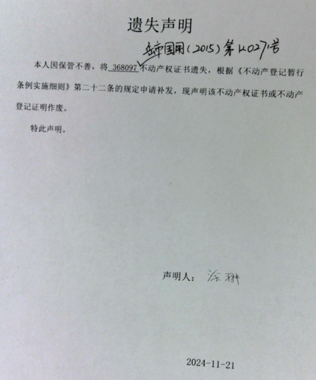 遗失声明(涂翀)
