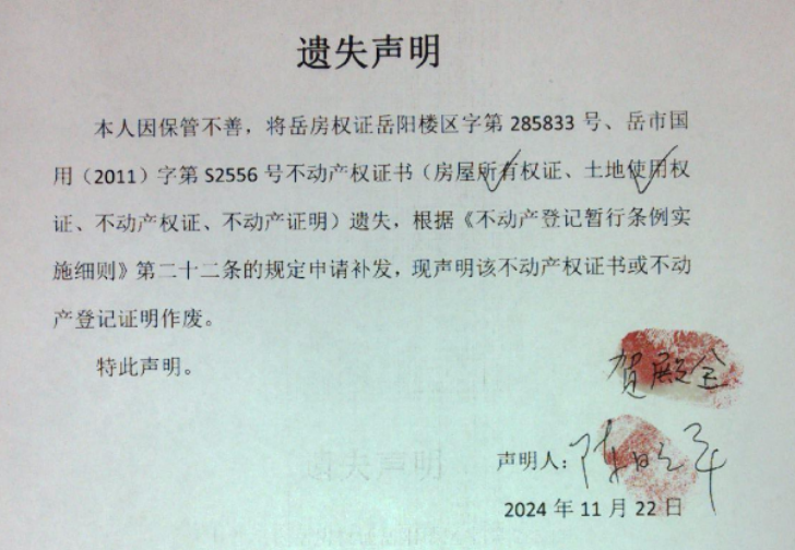遗失声明(贺殿全、陈晓平)