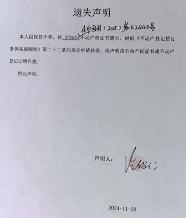 遗失声明(冷俊仁 )