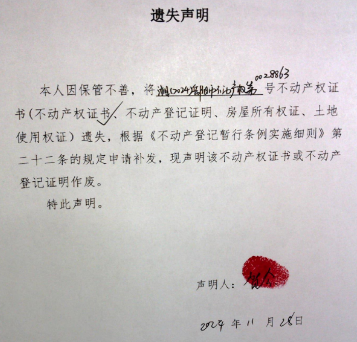 遗失声明(贺会)