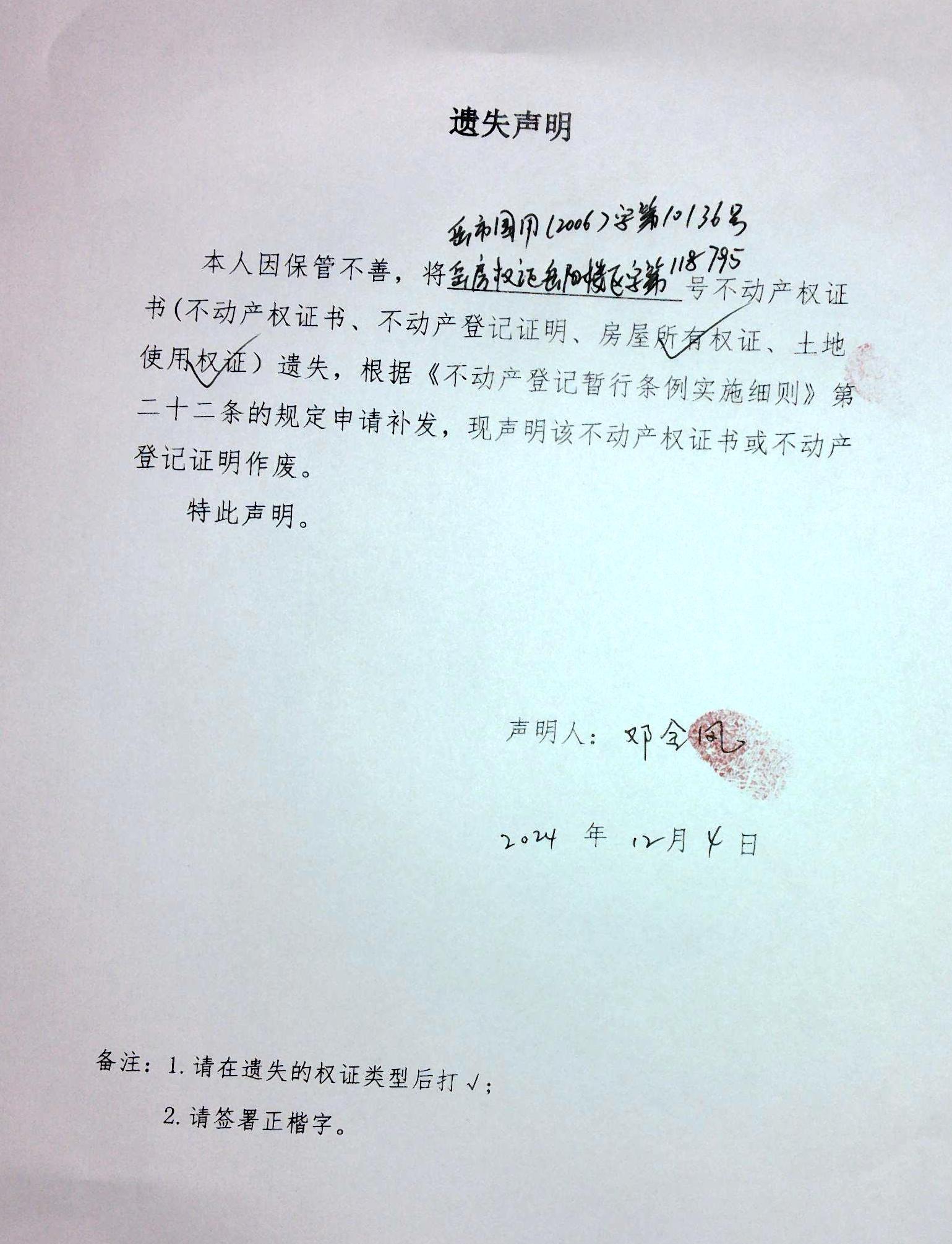 遗失声明(邓金凤)