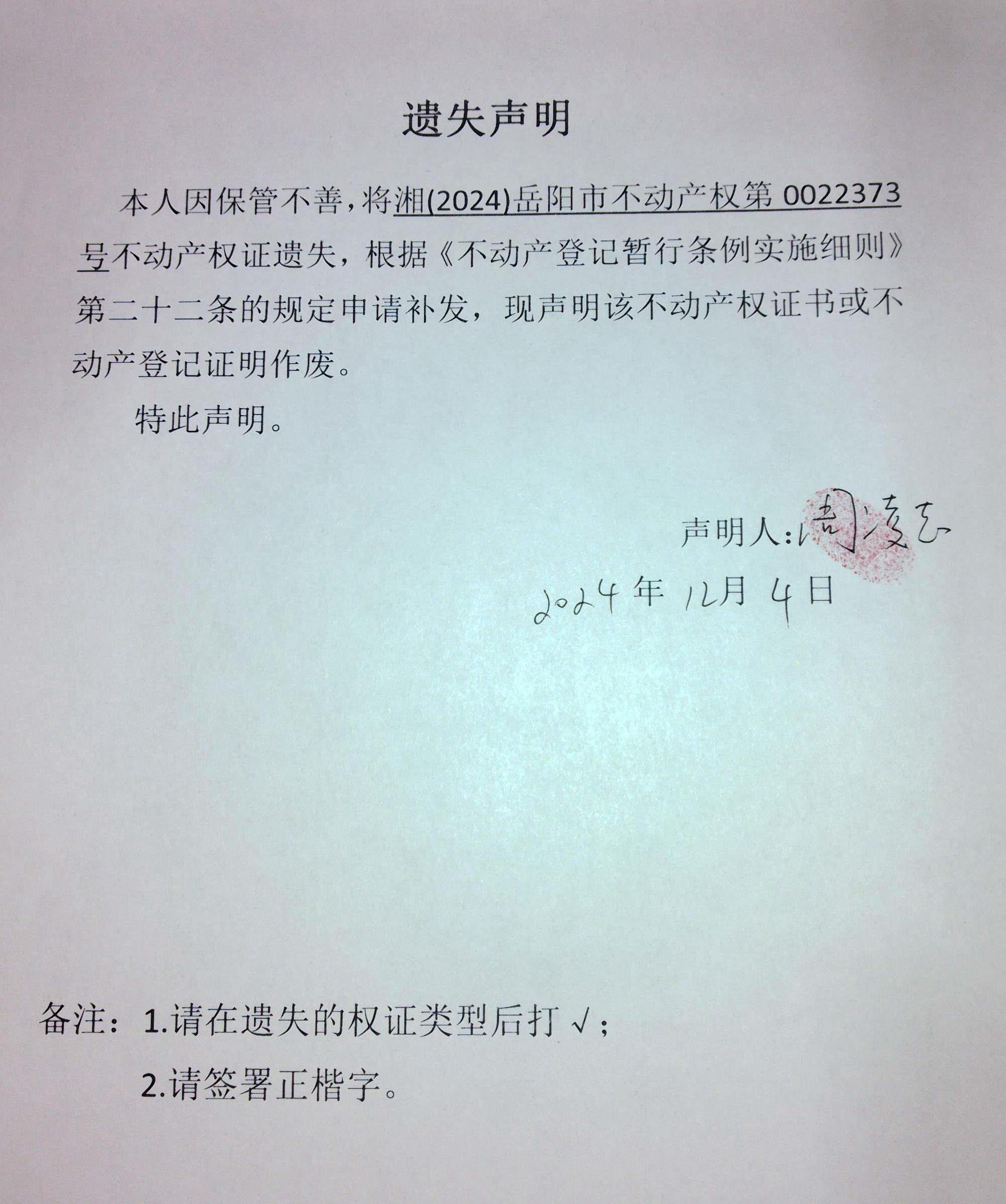 遗失声明( 周凌志 )