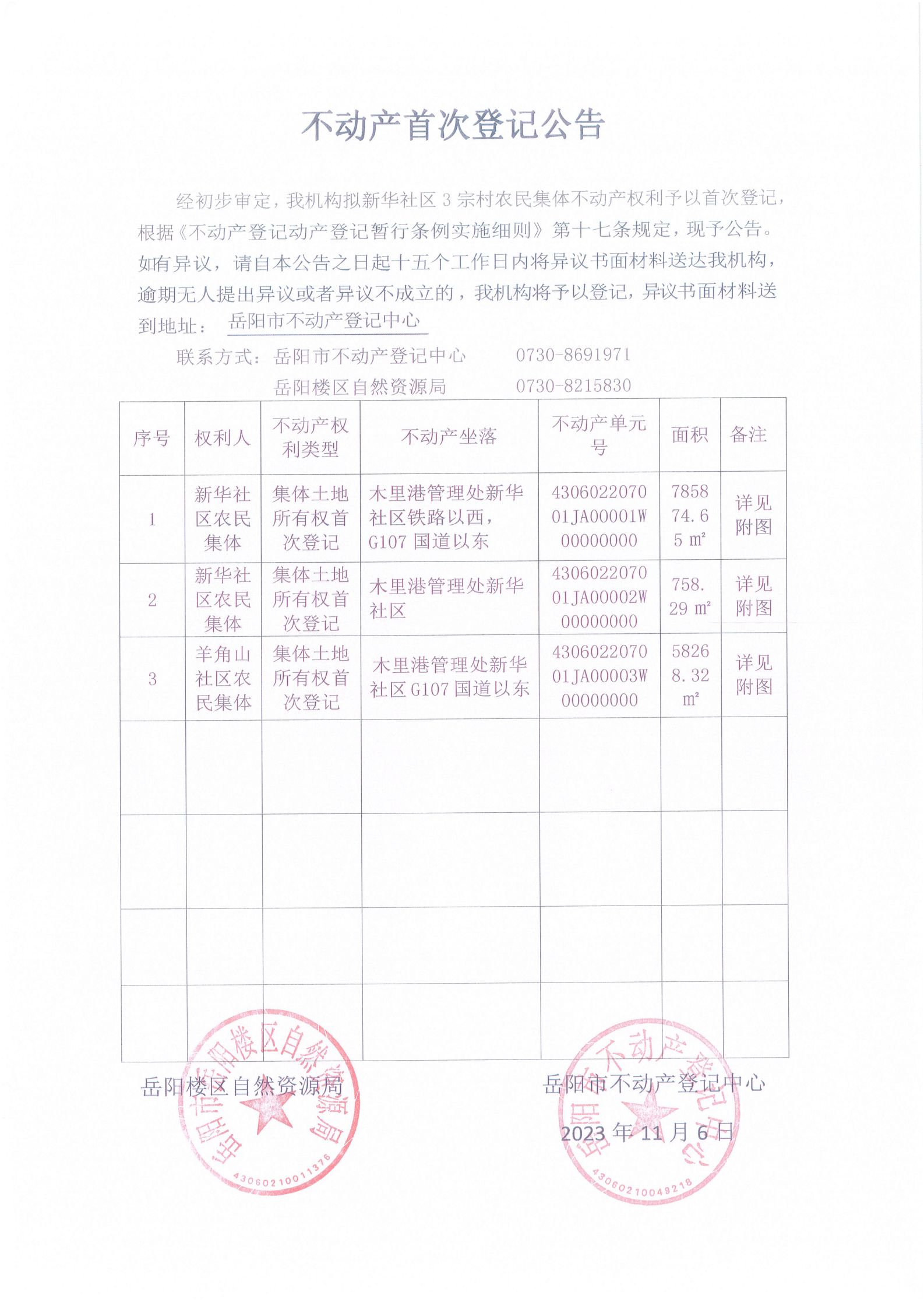 不动产首次登记公告(新华社区农民集体)