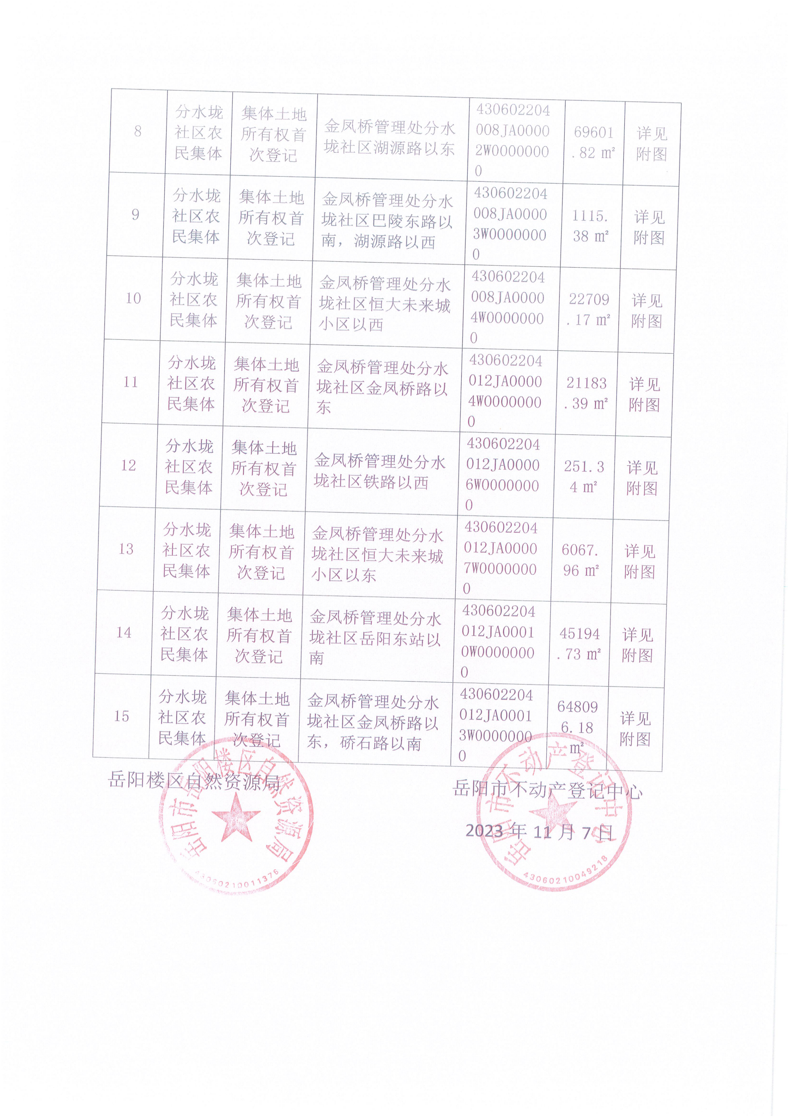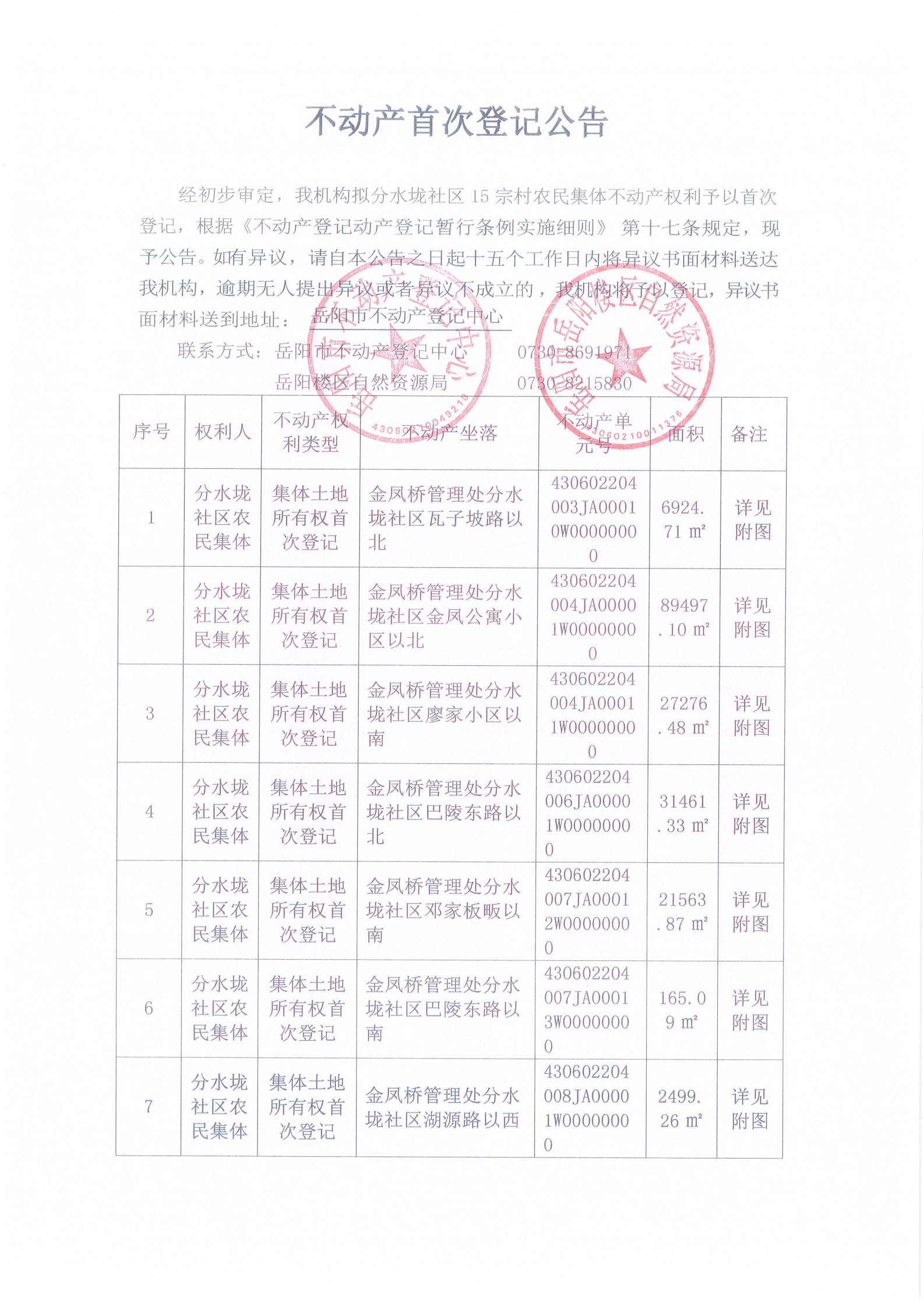 不动产首次登记公告(分水垅社区农民集体)