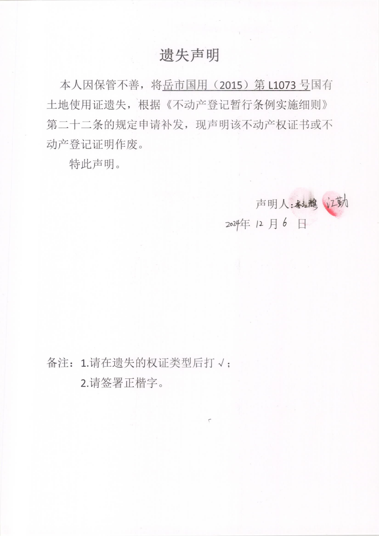 遗失声明(江勤、李红旗)
