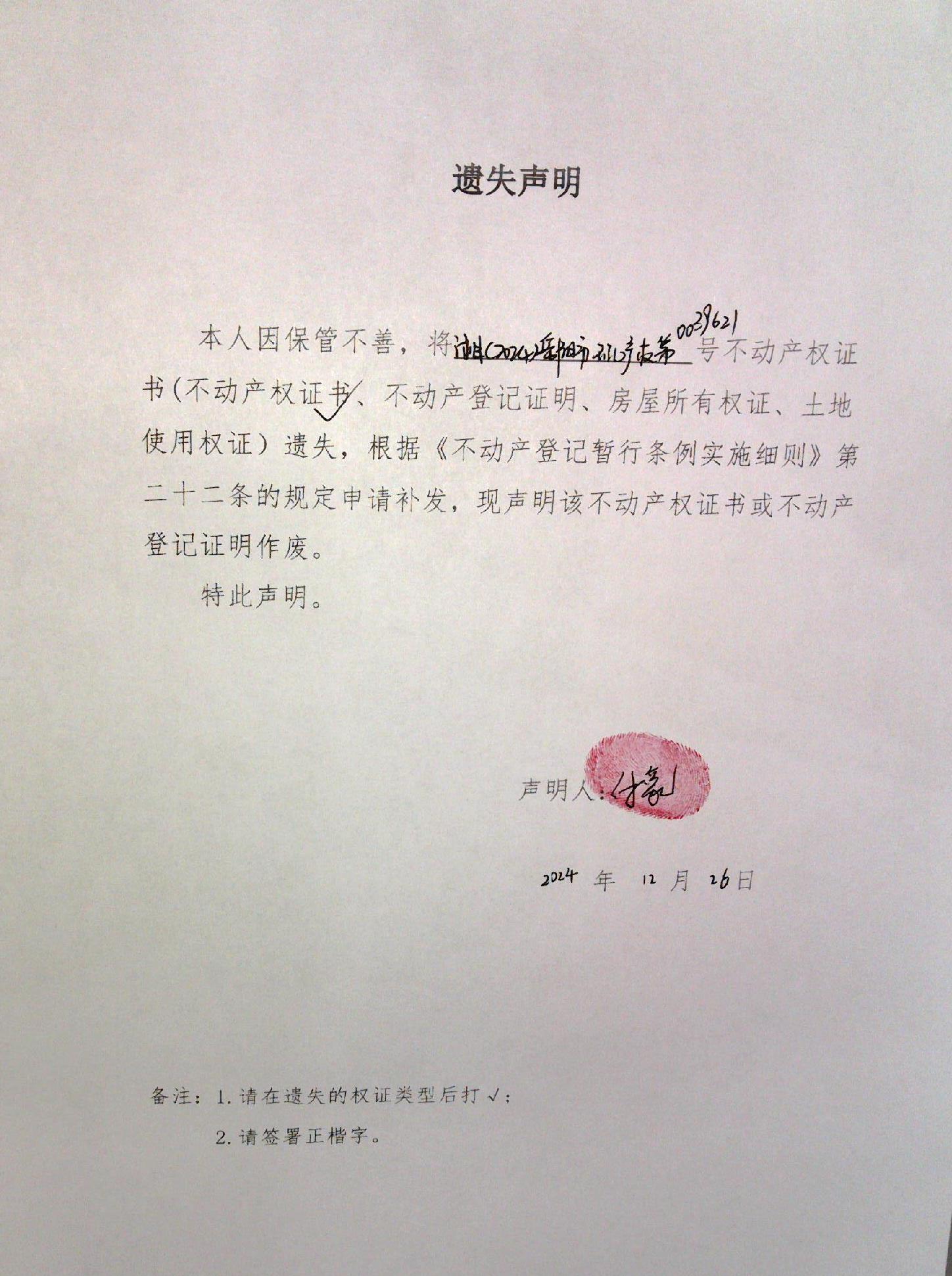 遗失声明(付豪)
