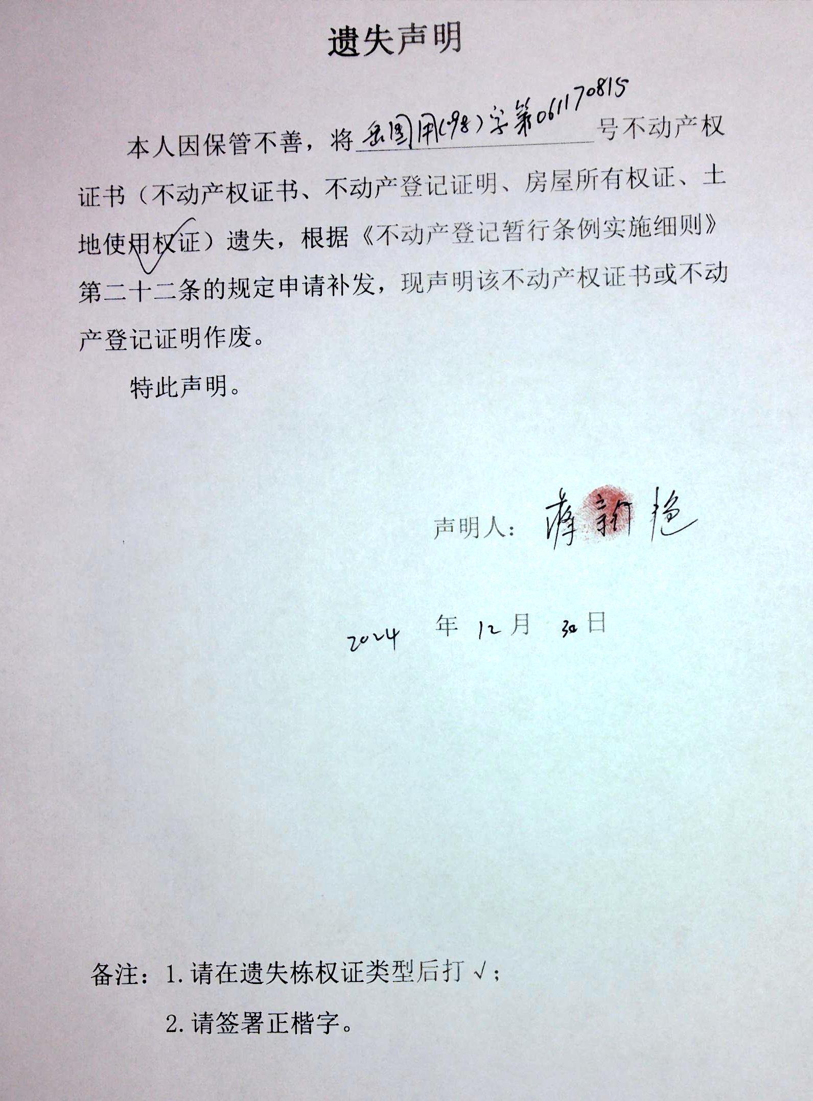 遗失声明(蒋新艳)