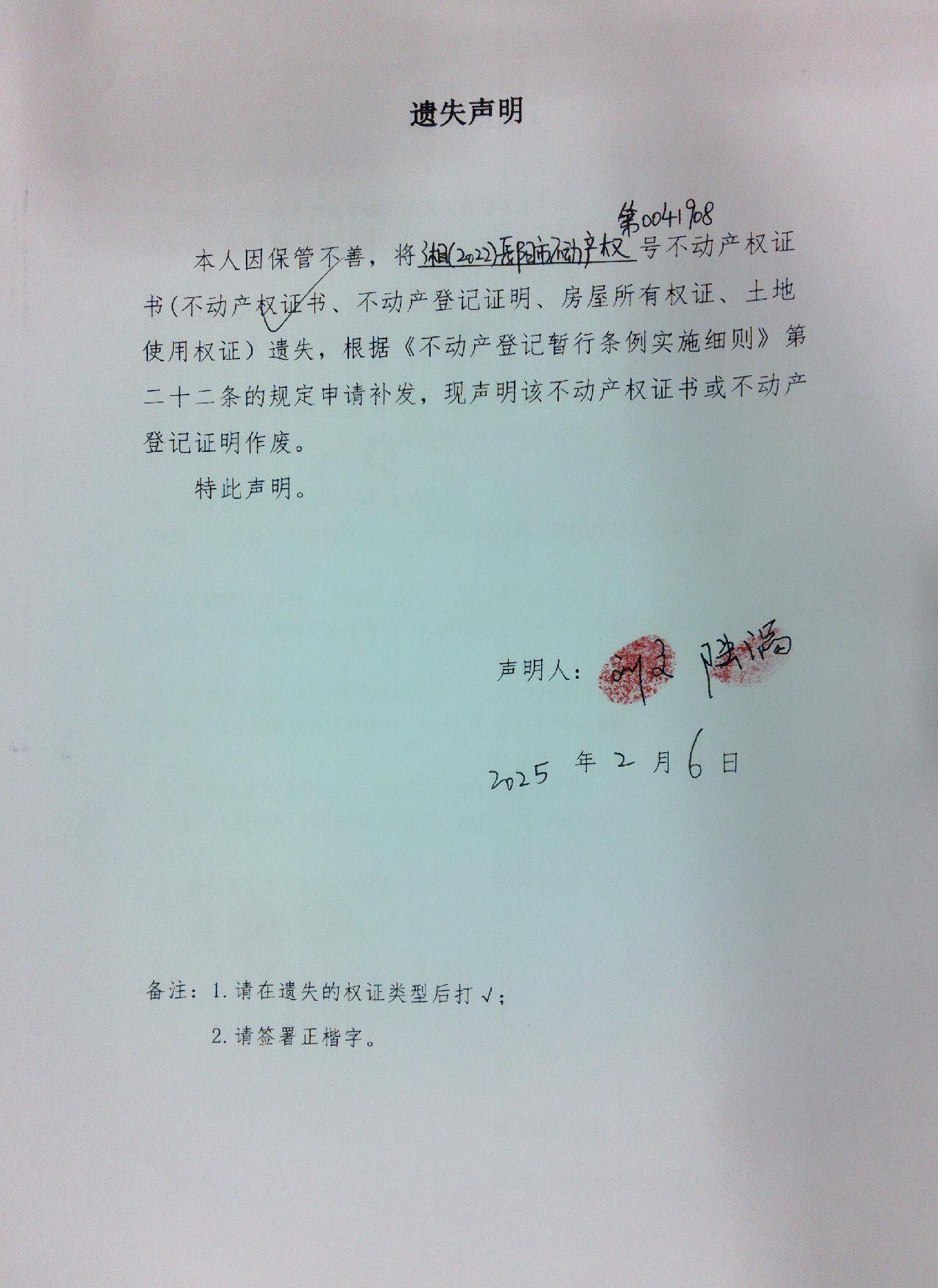 遗失声明(刘文、陆滔 )