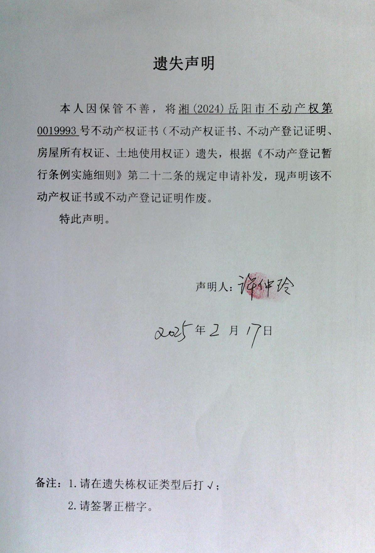 遗失声明(许仲玲 )
