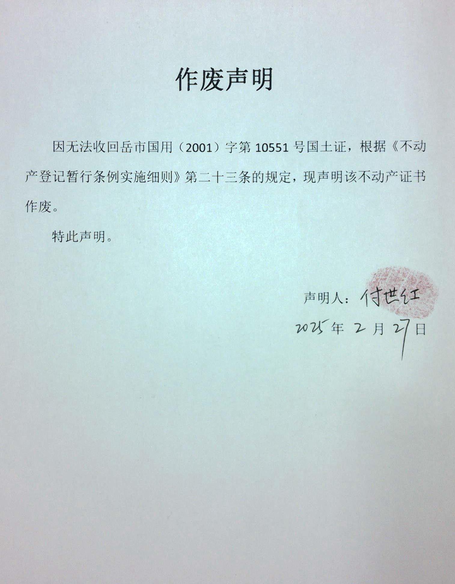 作废声明(付世红 )