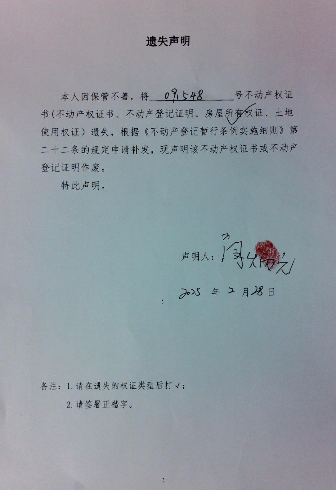 遗失声明(闵炳元)