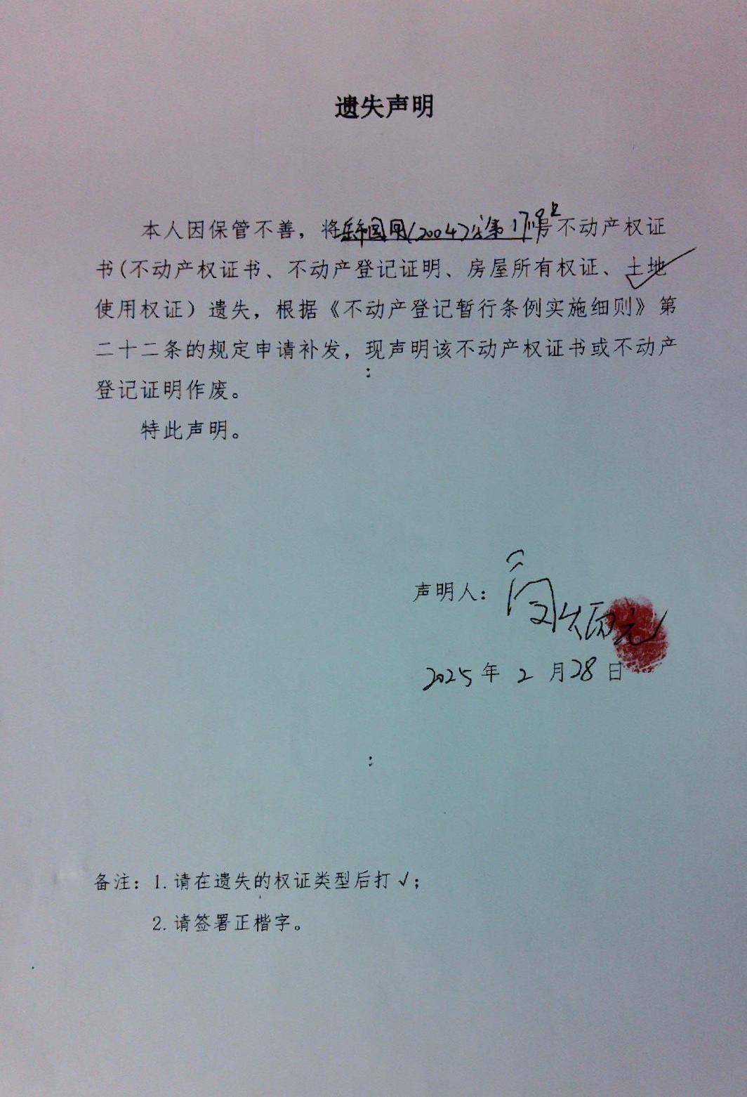 遗失声明(闵炳元)2