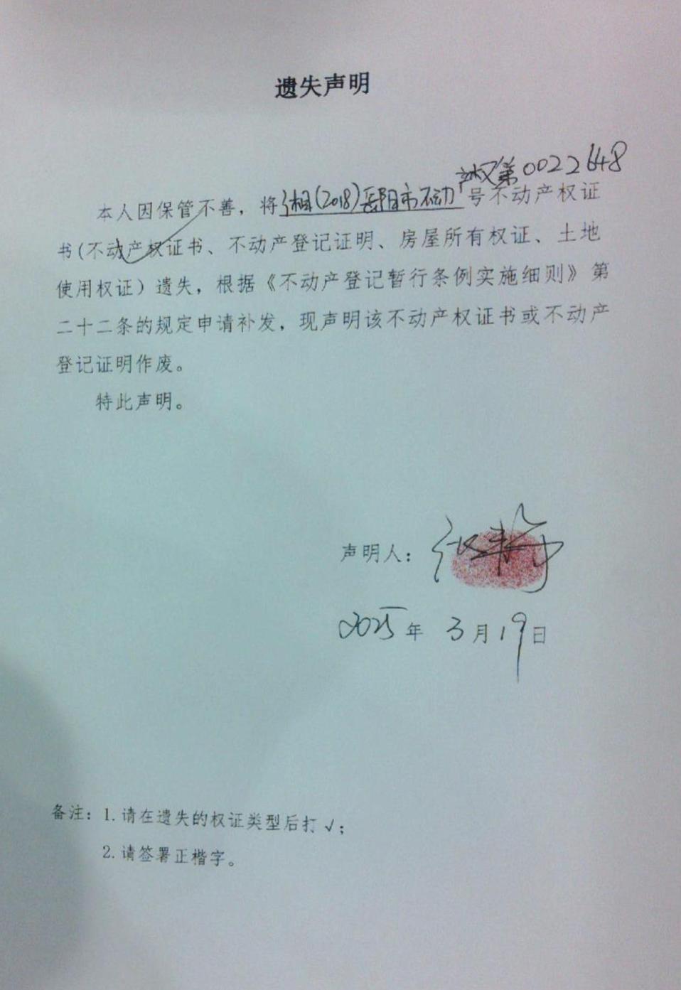 遗失声明( 张静 )