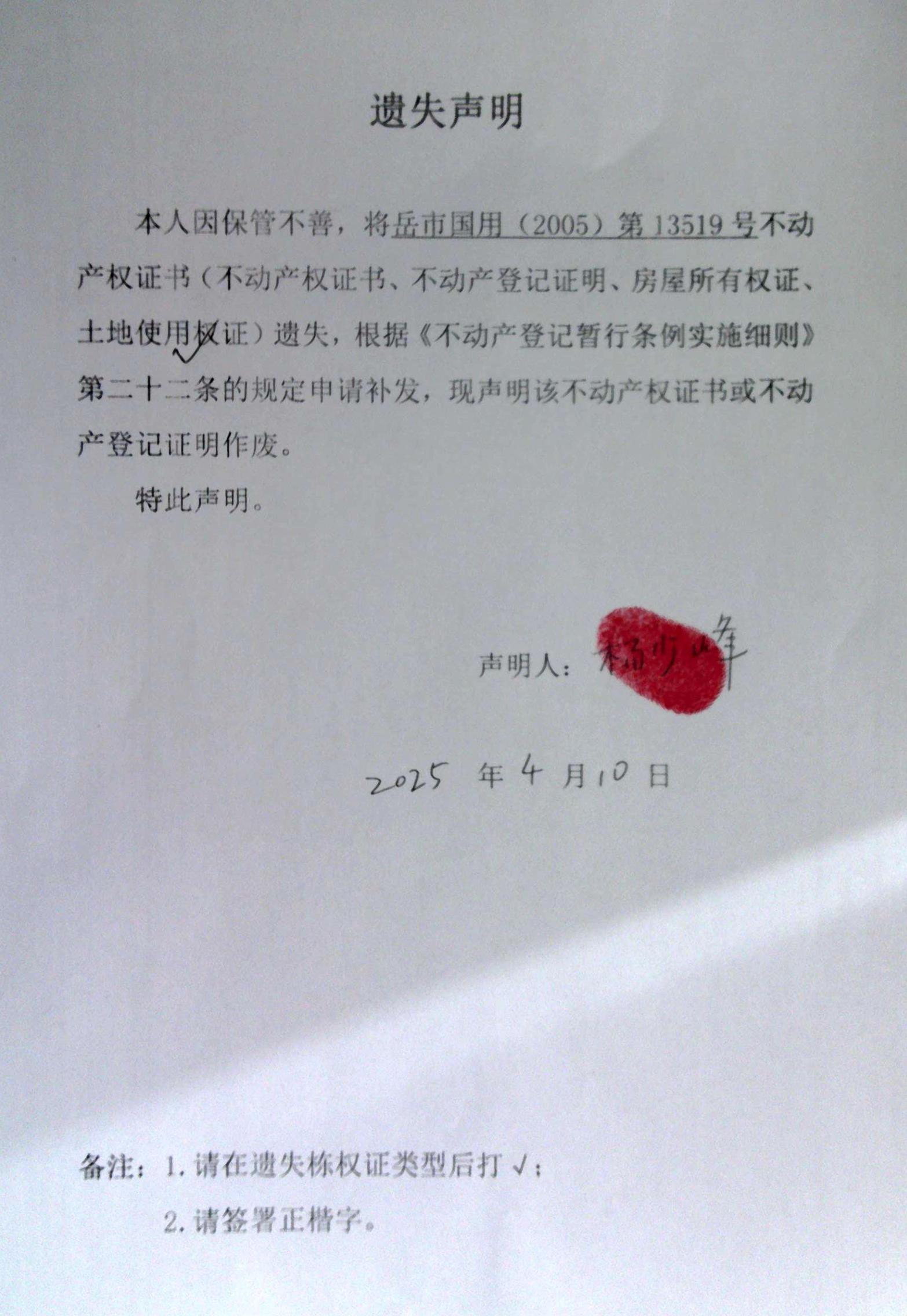 遗失声明(杨少峰)