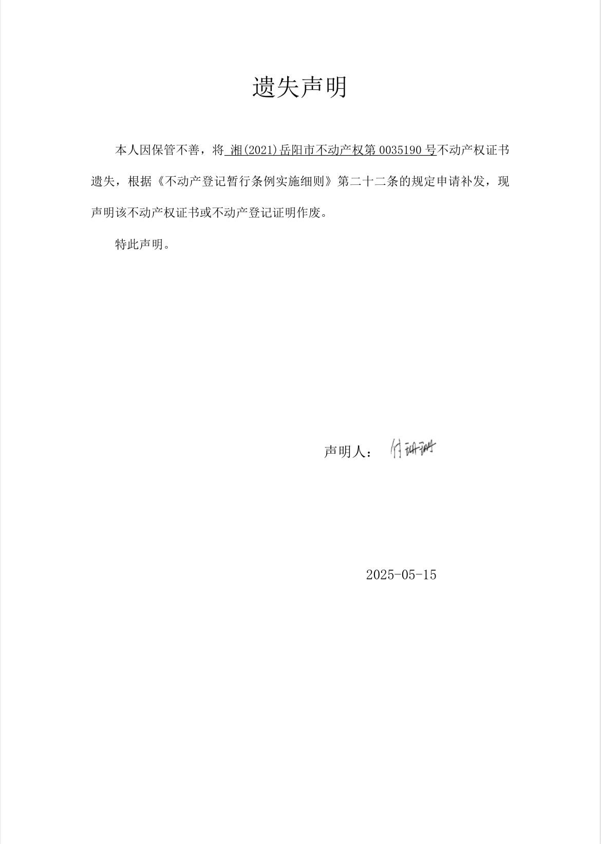 遗失声明(付珊珊)