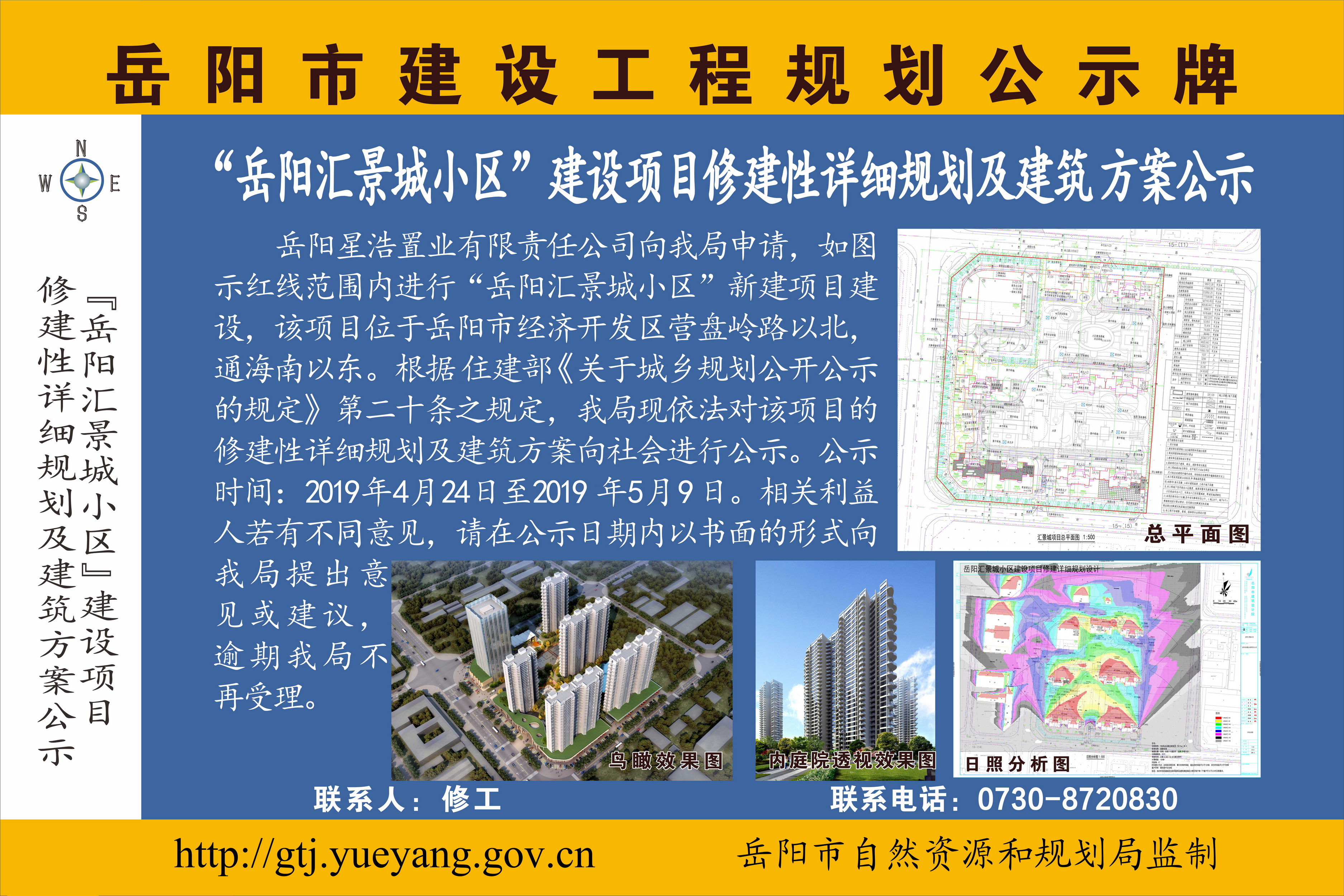 “岳阳汇景城小区”建设项目修建性详细规划及建筑方案公示