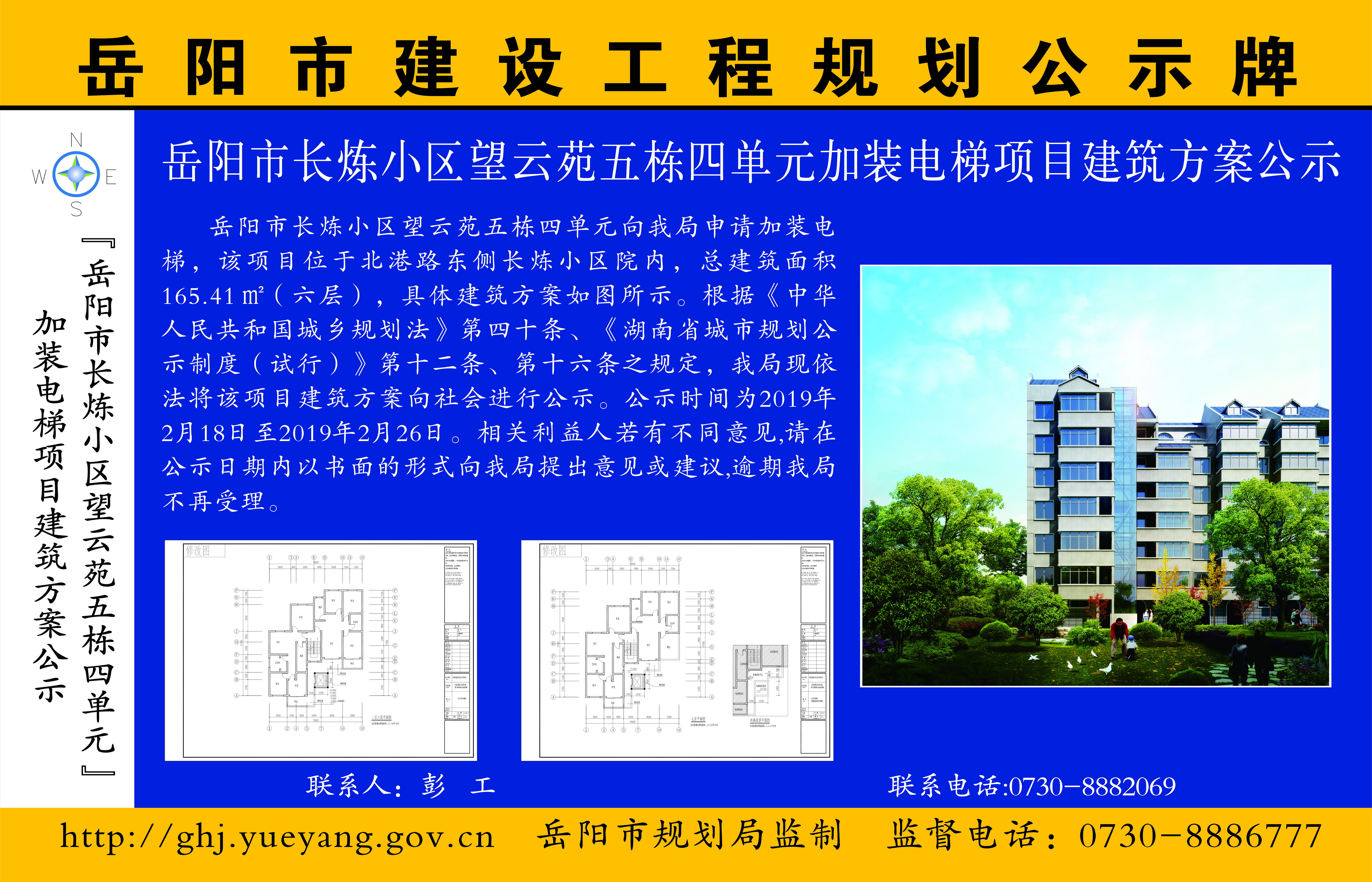 岳阳市长炼小区望云苑五栋四单元加装电梯项目建筑方案公示
