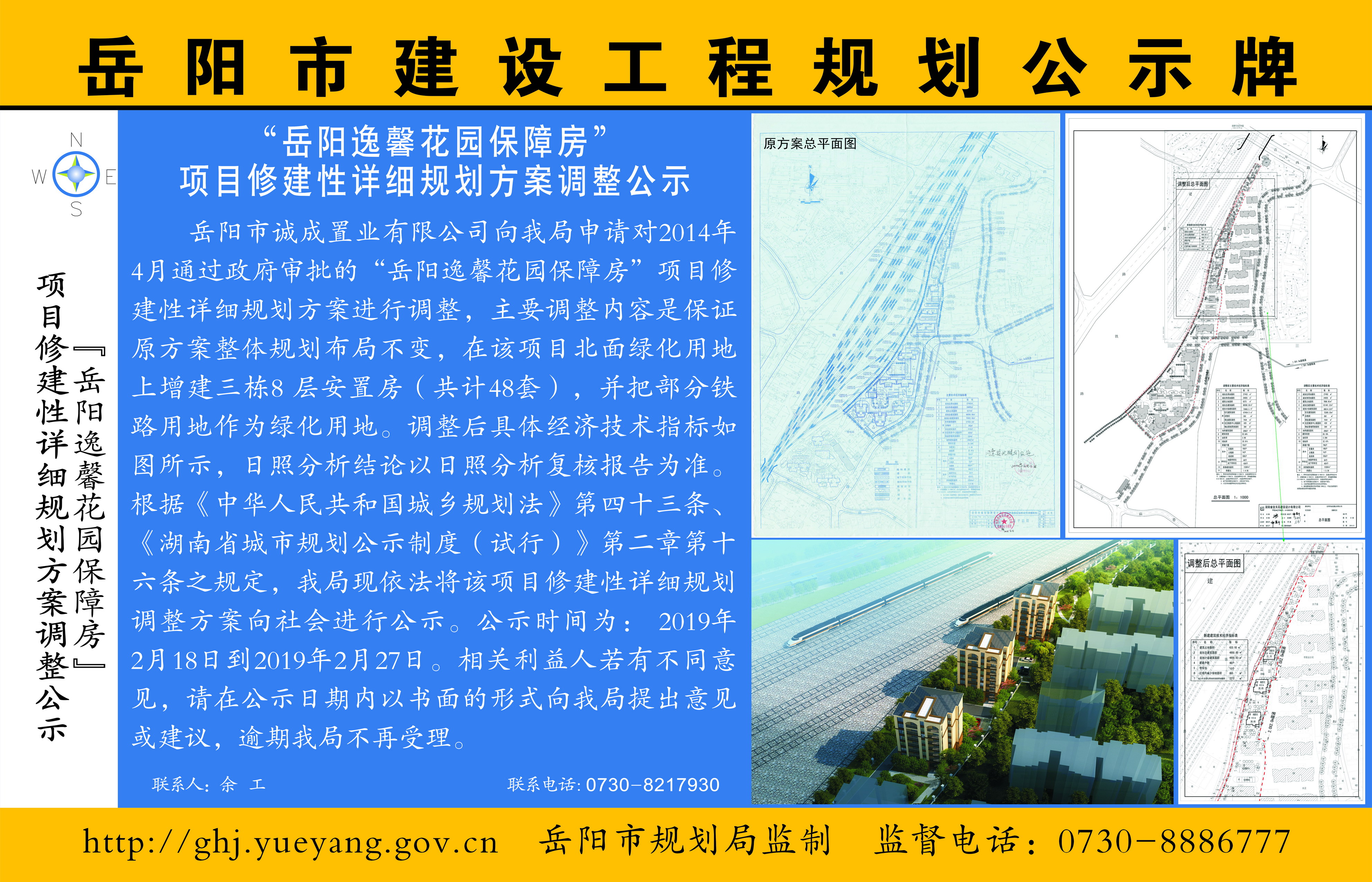 “岳阳逸馨花园保障房”项目修建性详细规划方案调整公示