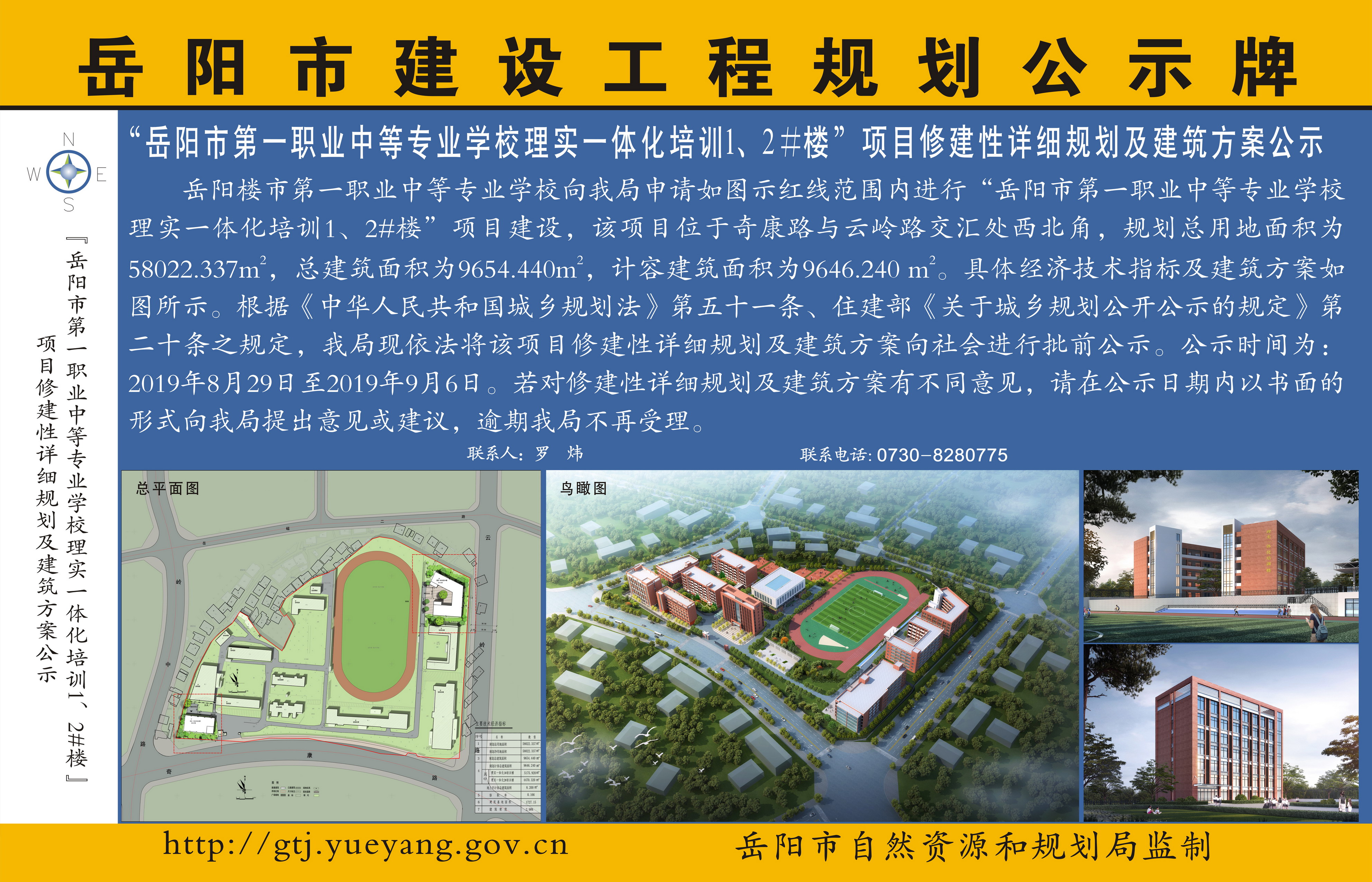 “岳阳市第一职业中等专业学校理实一体化培训1、2#楼”项目修建性详细规划及建筑方案公示