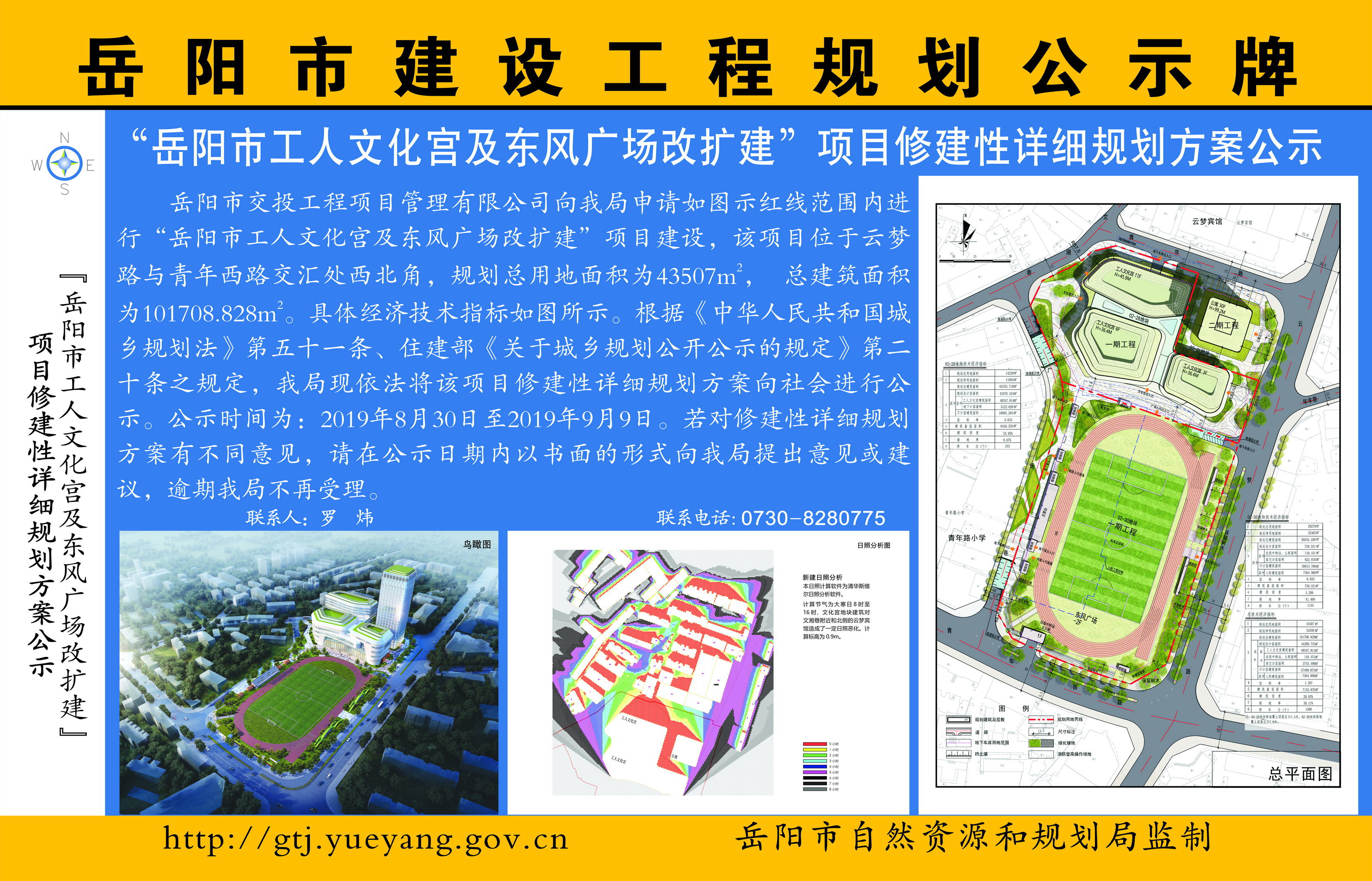 “岳阳市工人文化宫及东风广场改扩建”项目修建性详细规划方案公示