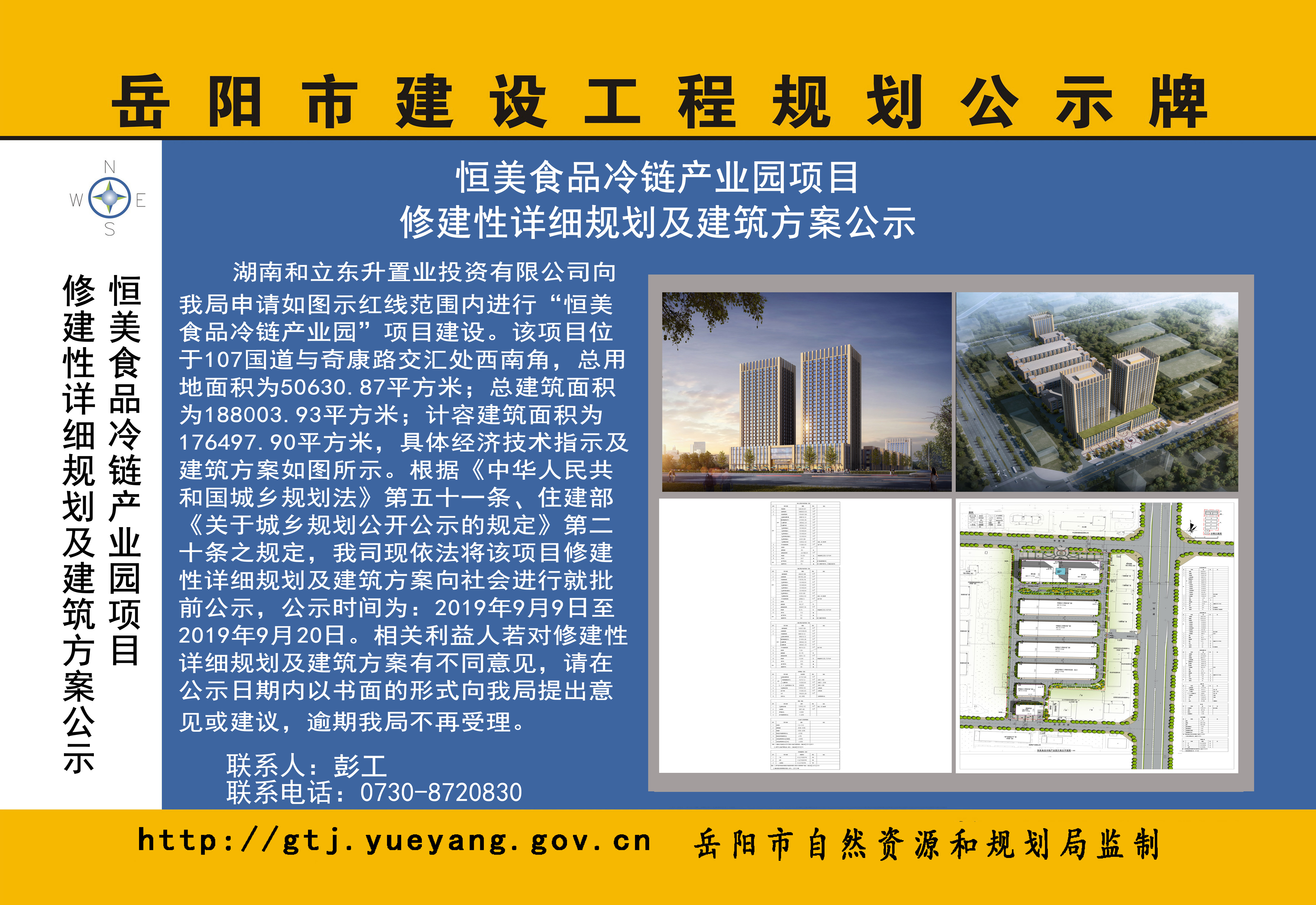恒美食品冷链产业园项目修建性详细规划及建筑方案公示