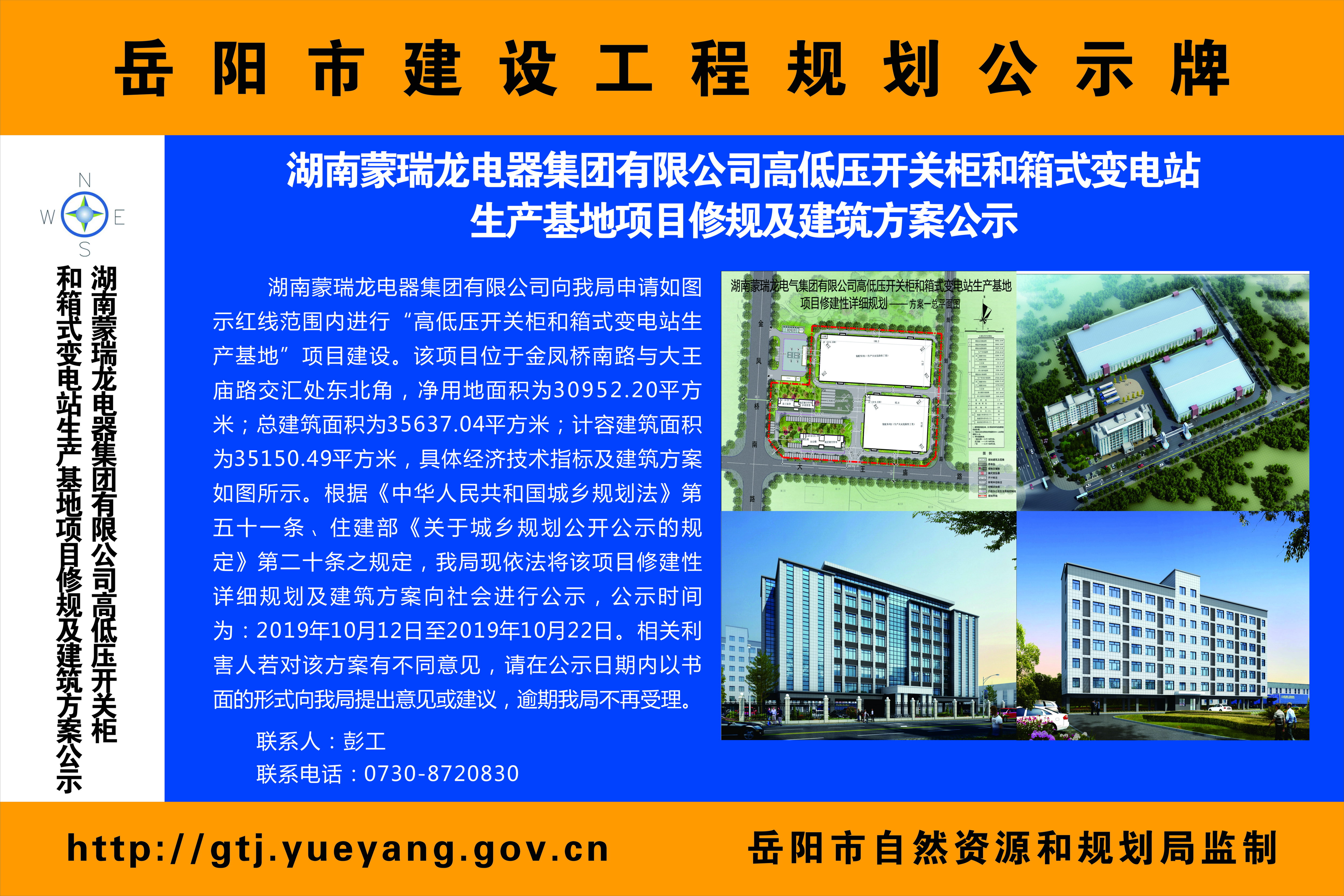 湖南蒙瑞龙电器集团有限公司高低压开关柜和箱式变电站生产基地项目修规及建筑方案公示