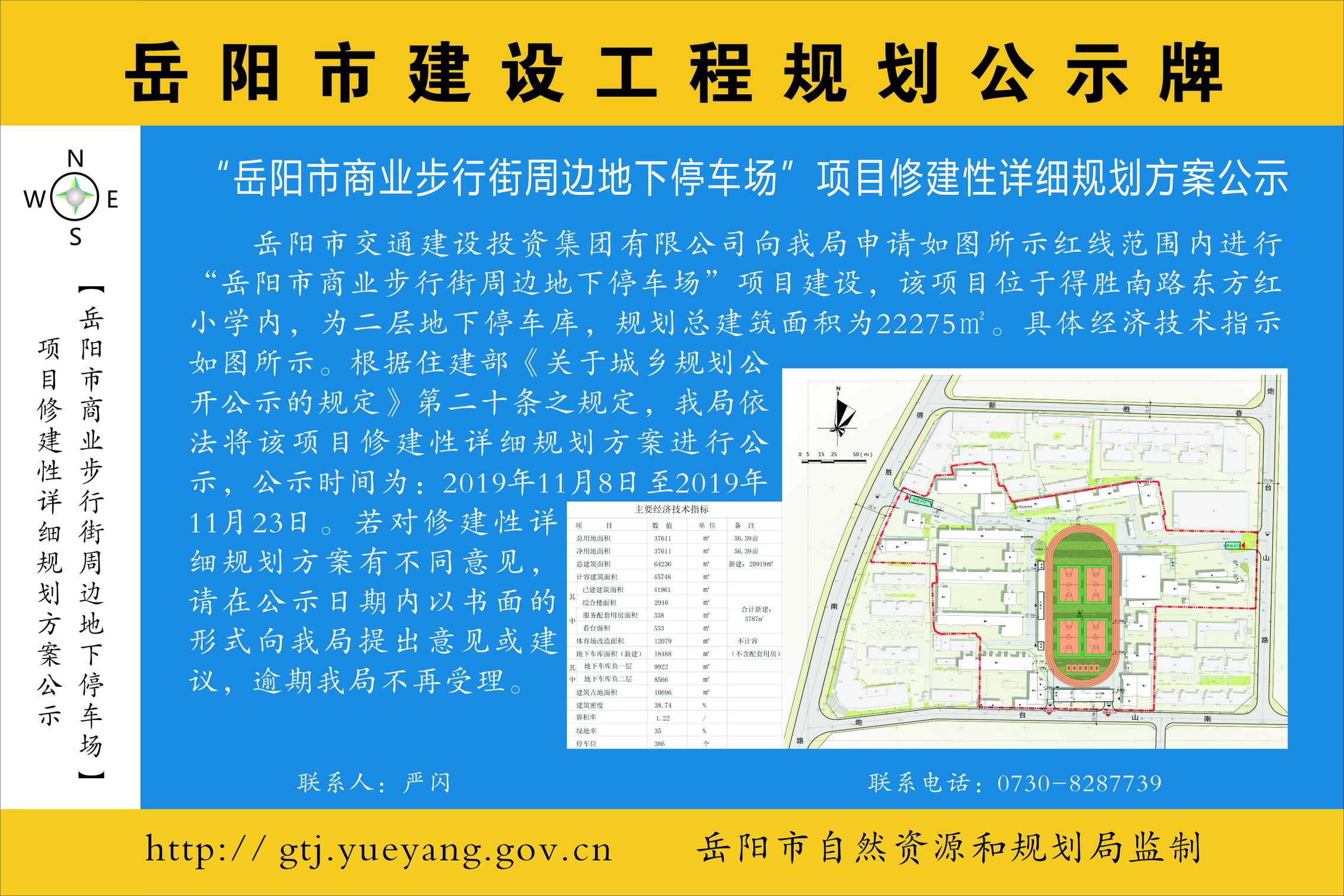 “岳阳市商业步行街周边地下停车场”项目修建性详细规划方案公示